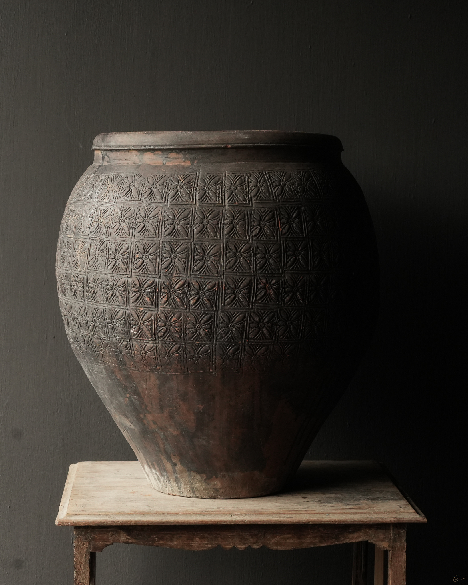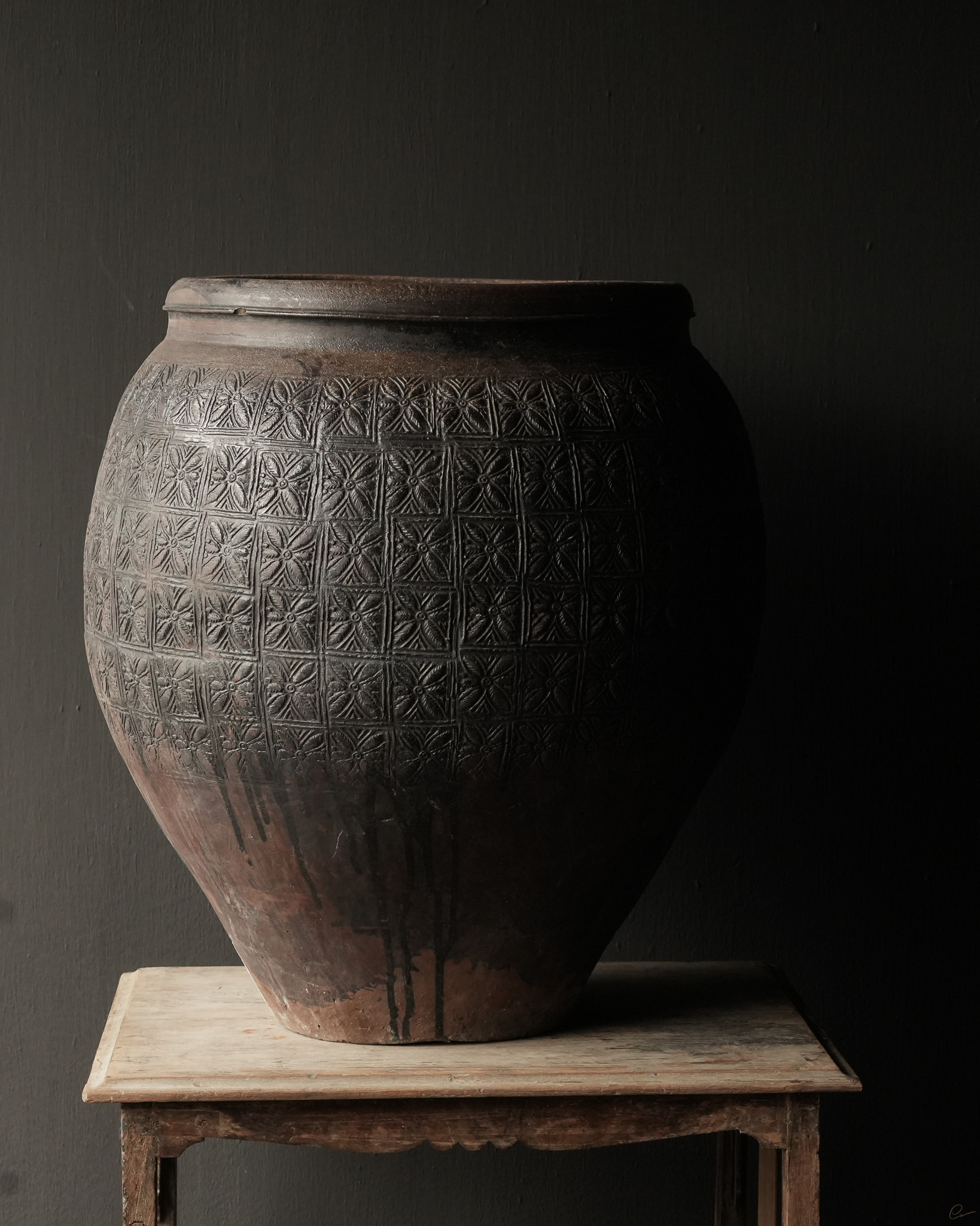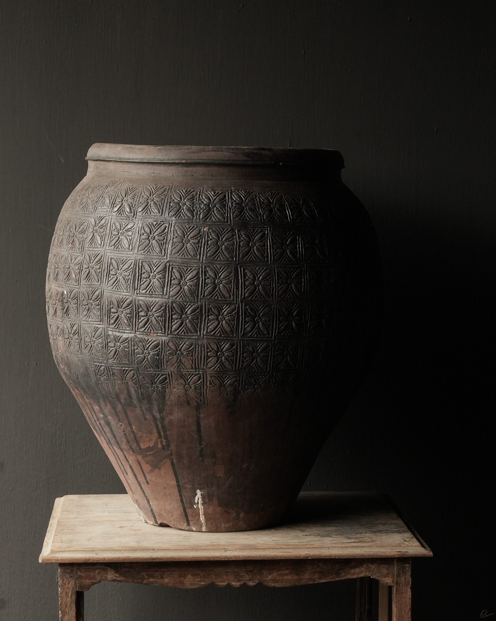 Uniek Oud aardewerk Kruik Bruin/grijs