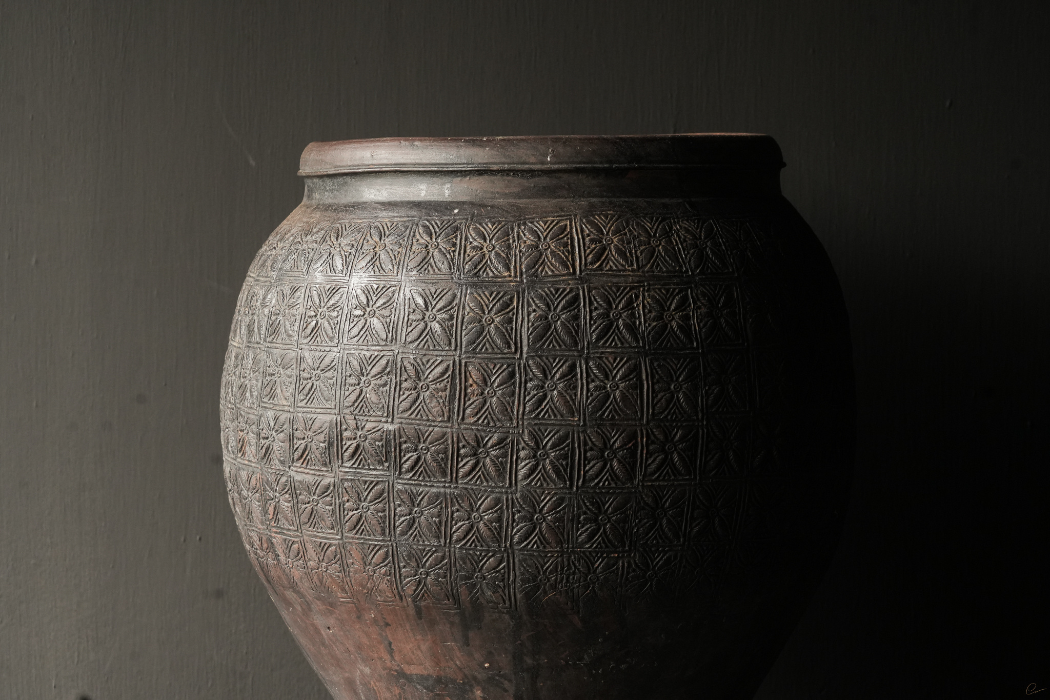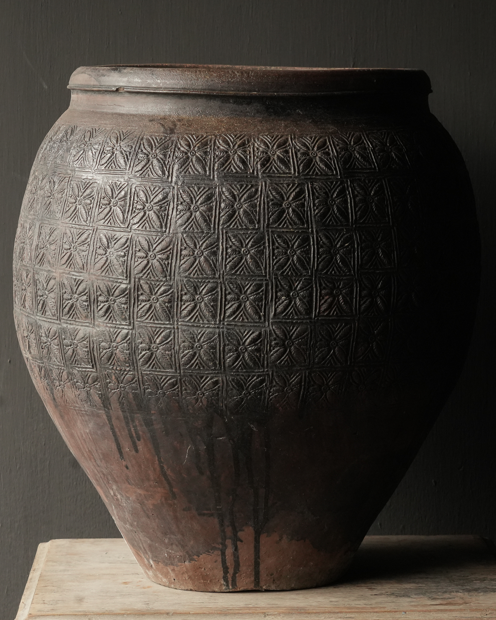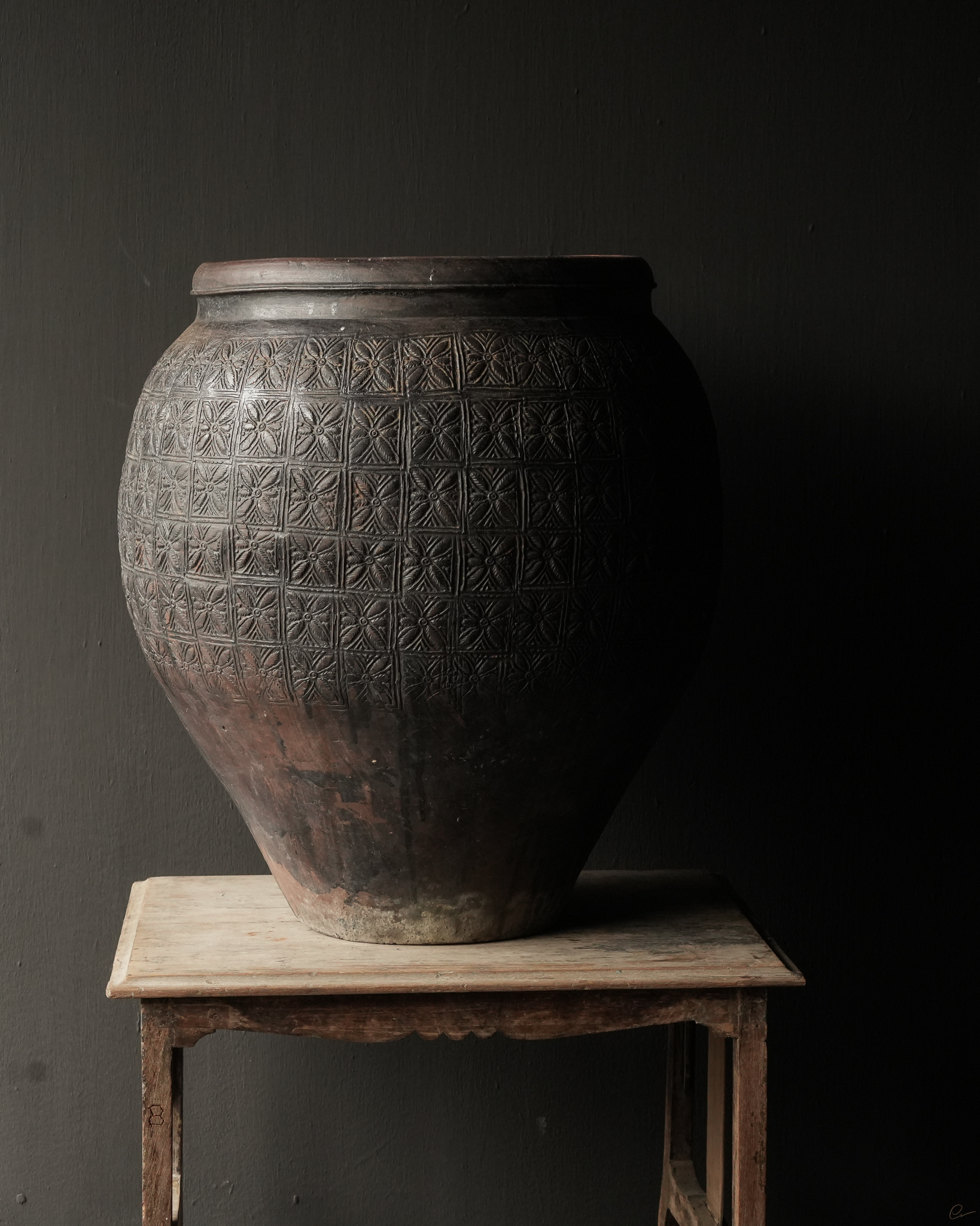 Uniek Oud aardewerk Kruik Bruin/grijs