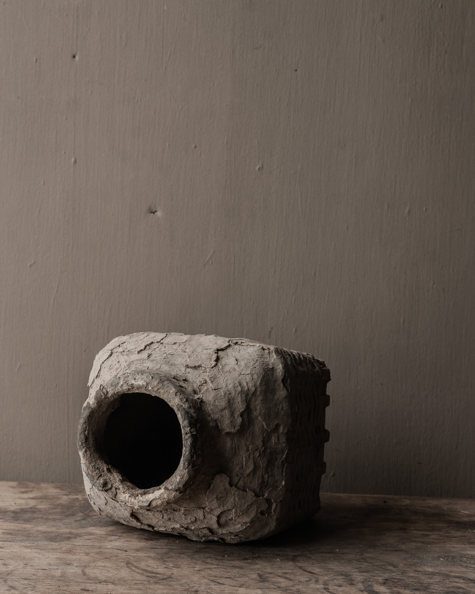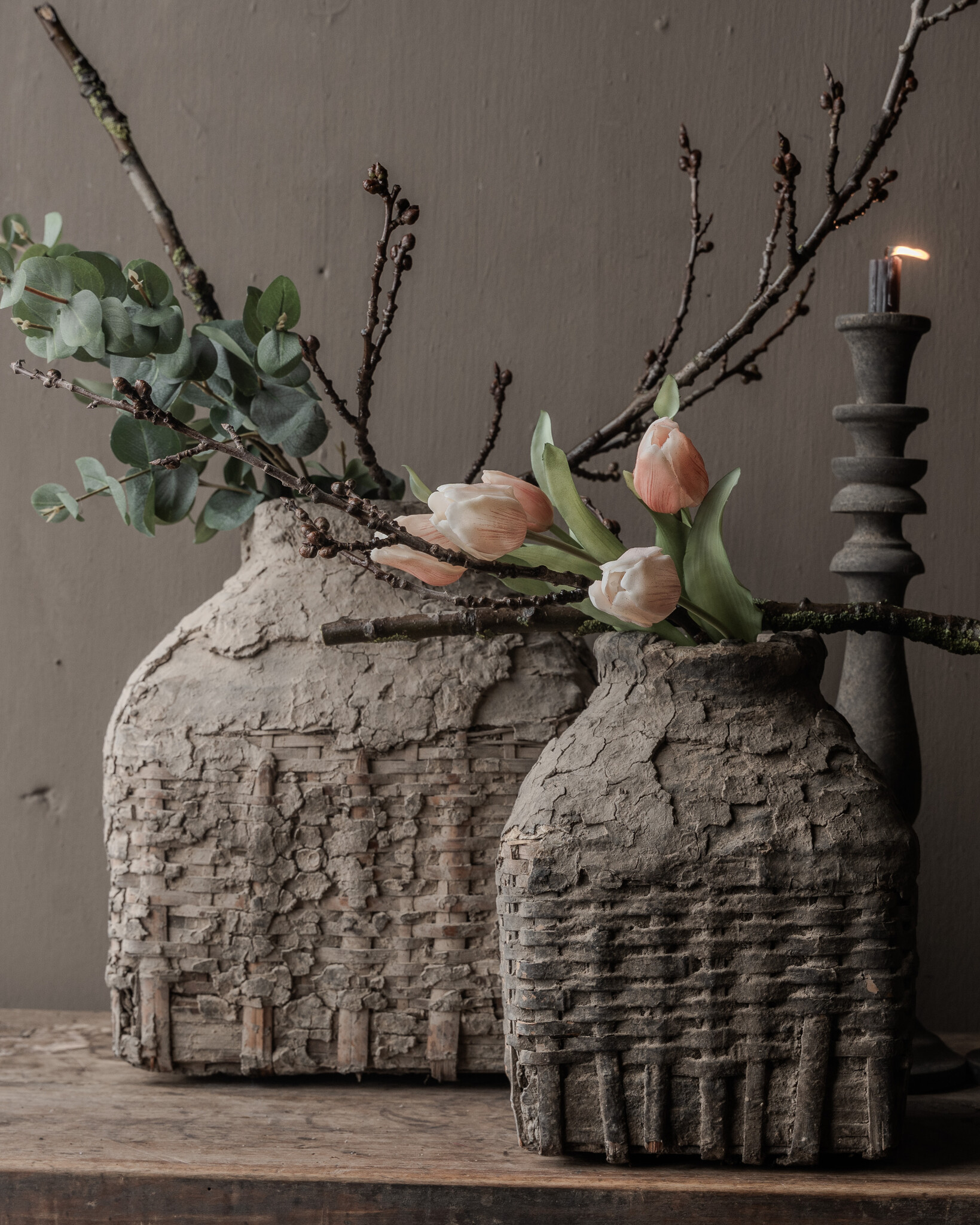 Dit object is puur decoratief en past perfect binnen een stoer, sober en wabi-sabi interieur. Mooi met enkele sobere takken, maar ook zonder inhoud een krachtig statement.