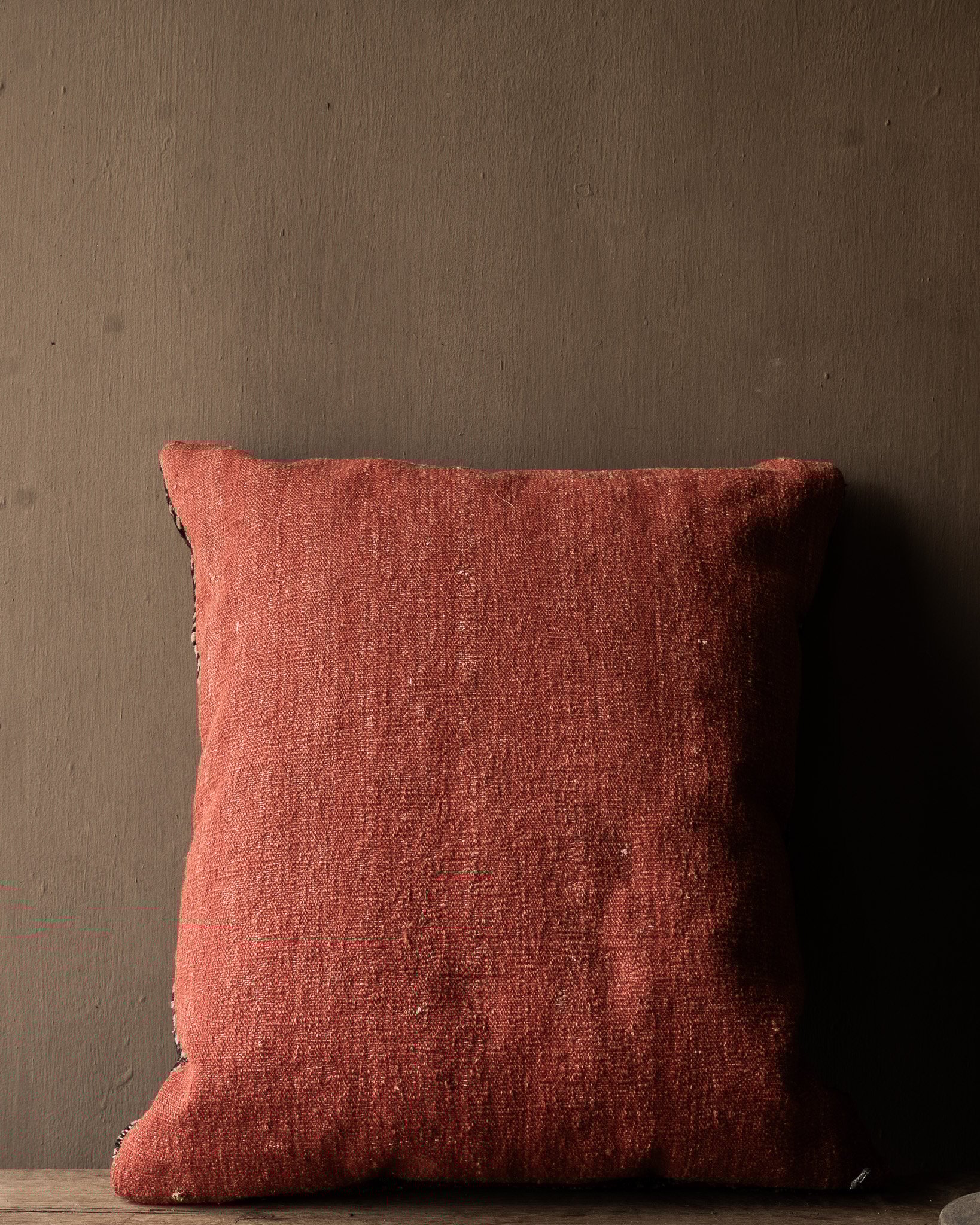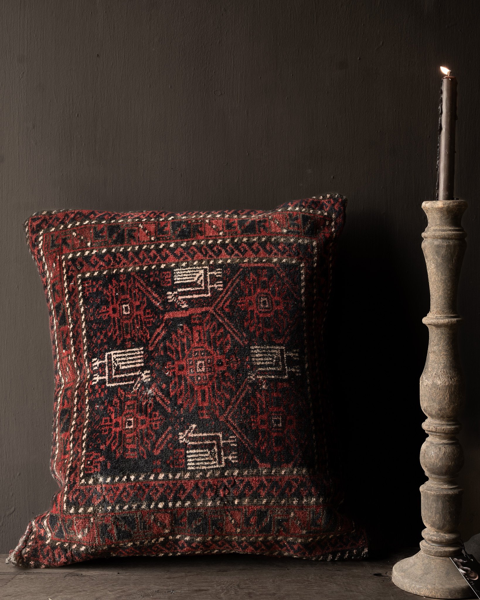 Het formaat van 40x50 cm maakt dit kussen perfect als sfeervolle aanvulling op de bank, stoel of bed. Ook als los decoratiestuk, bijvoorbeeld in een houten kist of op een robuuste bank, komt de rijke structuur en patina van het karpet prachtig tot zijn recht.